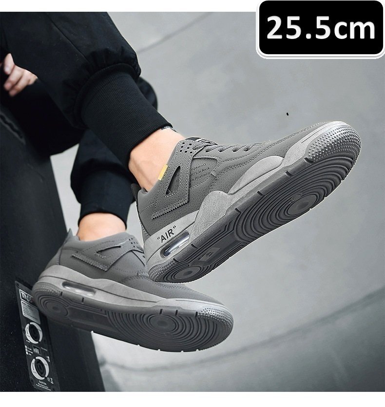 > ☆ 激安 メンズ スニーカー 25.5cm グレー 靴 シューズ 防滑 ランニング ジョギング 通勤 通学 旅行 遠足 【189】