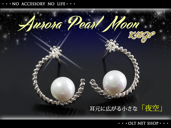 > 新品/ピアス/K18GP/パール/ダイヤ/シルバー/18金/レディース/真珠/ホワイトゴールド/両耳/スタッド/月/ムーン/星/上品/女性/CZ/WG