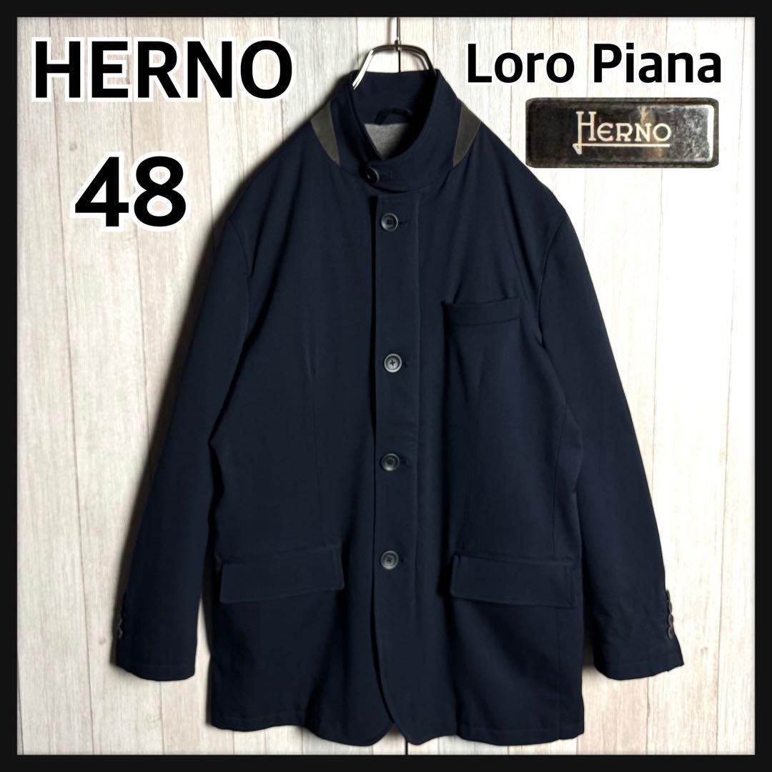 - 【激レア】イタリア製 HERNO Loro Piana ヘルノ ロロピアーナ素材 スタンドカラージャケット カバーオール ネイビー・紺 48 L相当