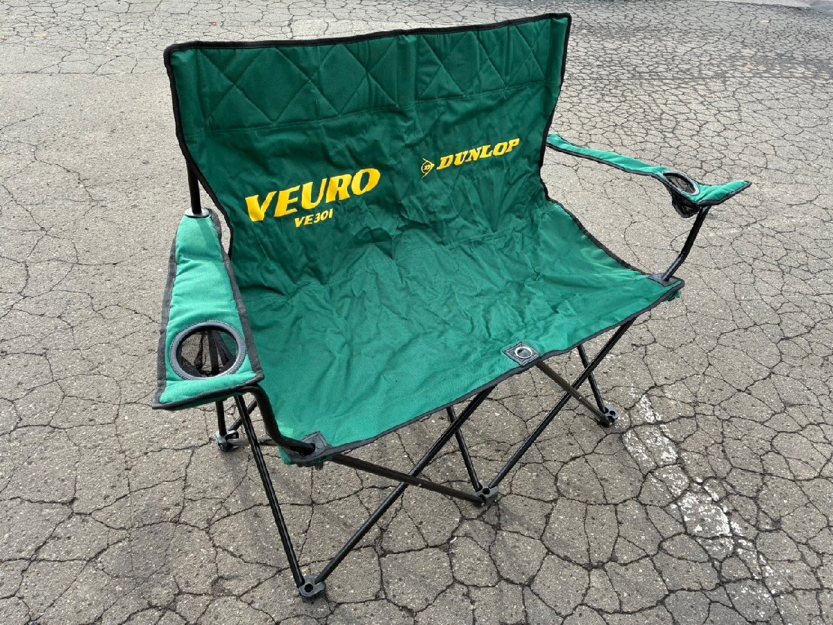 > ★ダンロップ VEURO VE301 カップホルダー付 二人掛け 折り畳みチェア アウトドアチェア 本体サイズ(約)幅128×奥51×H89㎝
