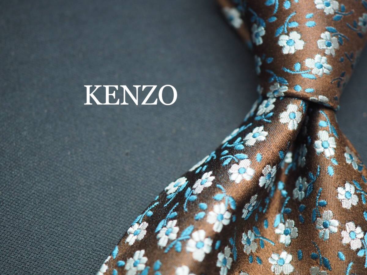 - 美品【KENZO ケンゾー】 G1772 ブラウン系 花 SILK ブランド ネクタイ 古着 良品 転売 仕入