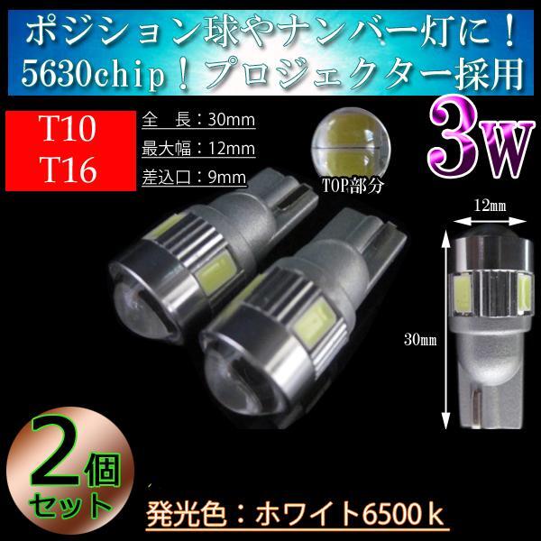 > 2個 T10 T16 3w 5630SMD 6連 プロジェクター 車検対応 スモールランプ スモール球 バックランプ LED ポジションランプ ホワイト