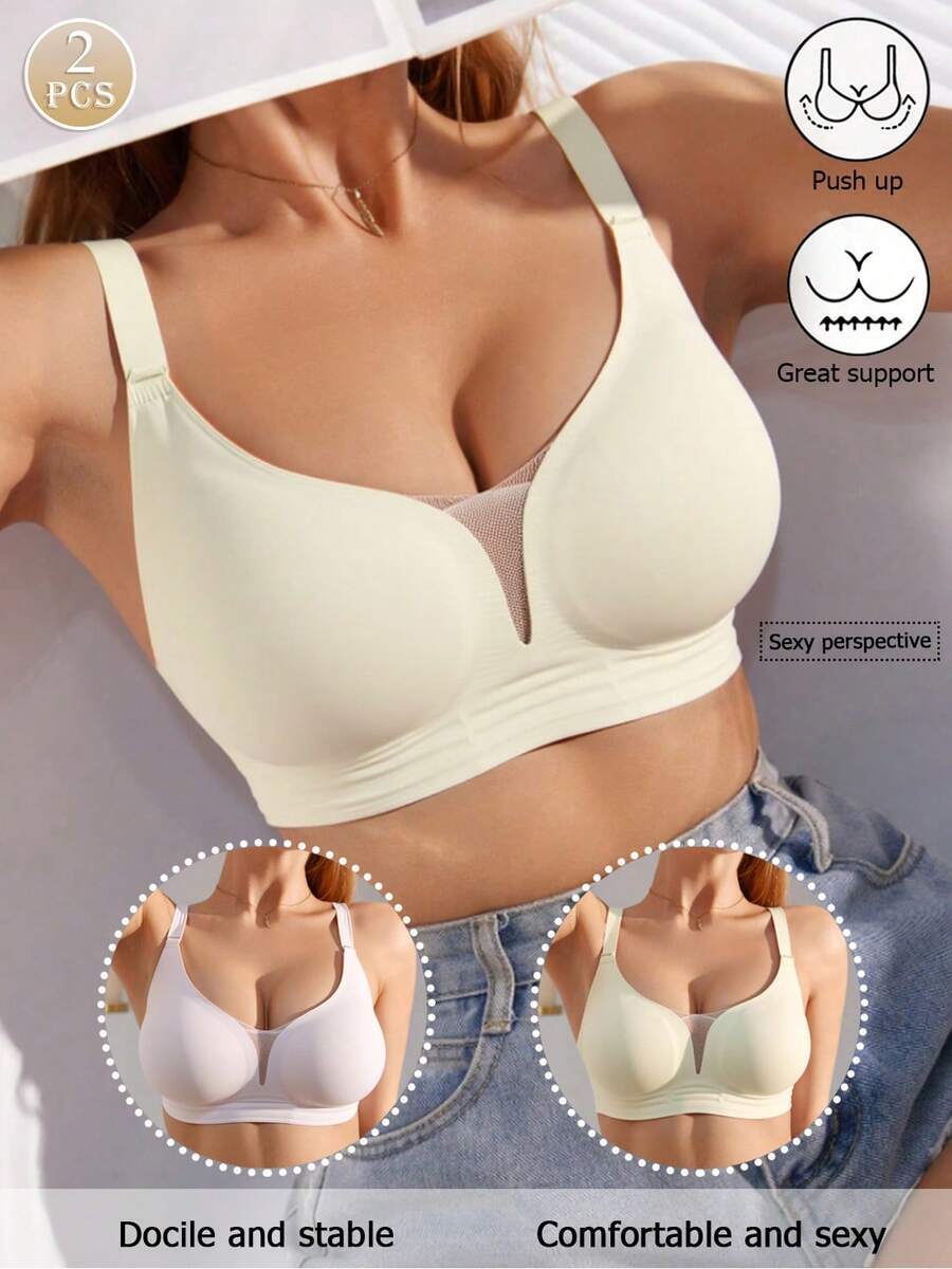 - インティメート ブラジャー 2枚 女性用インナーウェア、肌に優しい サポート付きブラ、ロマンチックなフレンチスタイルのカジュアルで