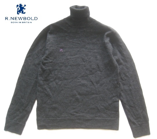> 高級!!R.ニューボールド R.NEWBOLD*ライオン刺繍 タートルネック ウールニットセーター L 濃灰 ポールスミス Paul Smith COLLECTION