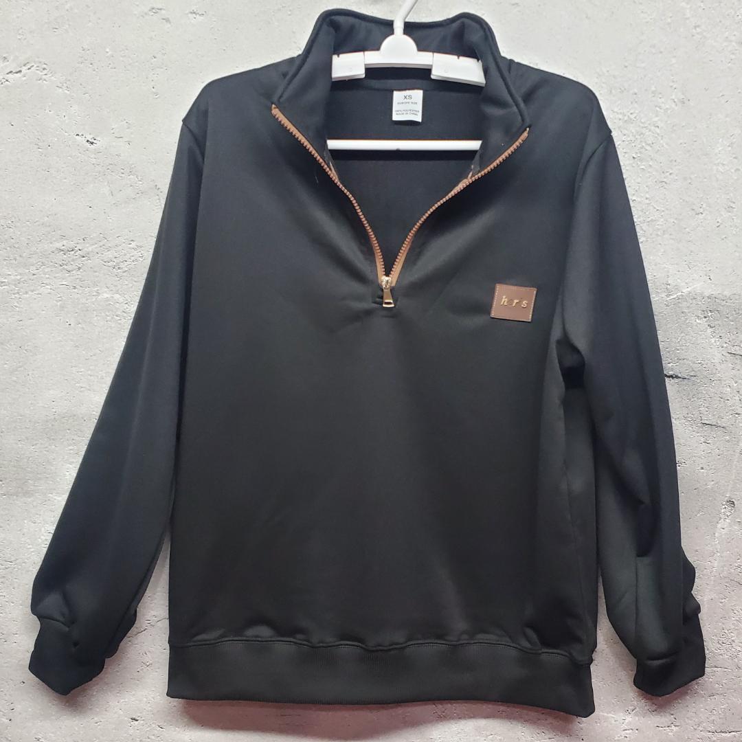 - シンプルで着まわしやすい ブラック ハーフジップトップス