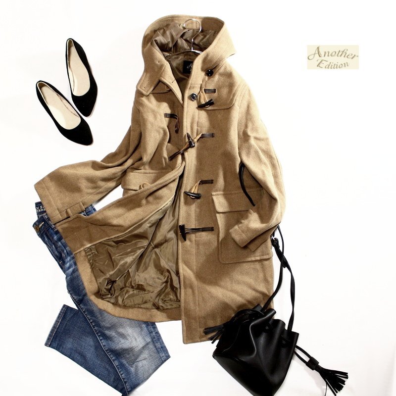 > アナザーエディション Another Edition 冬 可愛い あったか 牛革 ワンピース丈 ダッフルコート ウールコート ベージュ ブラウン
