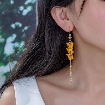 - ピアス ゆらゆら 揺れる ロングフラワー オレンジ 金木犀 大人 可愛い