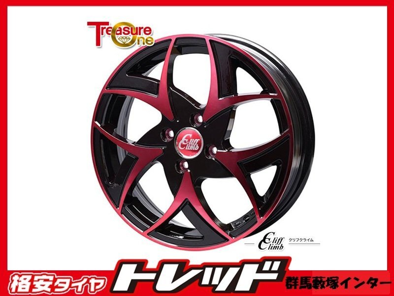 - 群馬藪塚店 新品 アルミホイール 4本セット クリフクライム TC-05 15インチ 4.5J PCD100 4H +43 ブラックレッドクリア