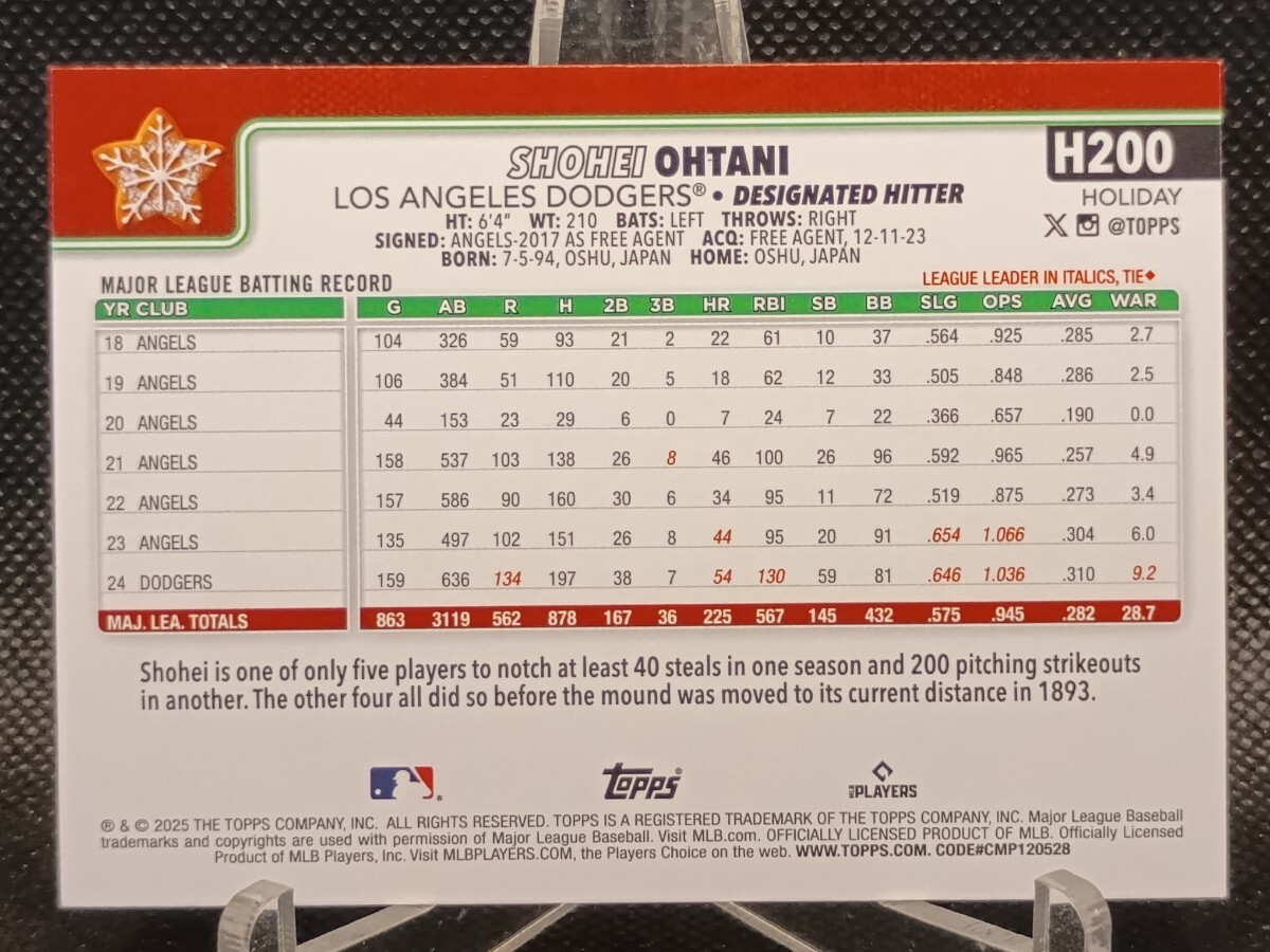 - 大谷翔平 ホリデー バックバリエーション【2025 TOPPS HOLIDAY BASEBALL H200 SHOHEI OHTANI HOLIDAY BACK VARIATION】 ドジャース