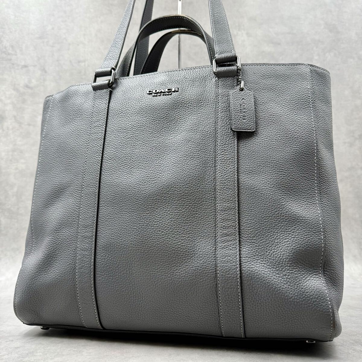 - 美品/希少色■ COACH コーチ ハドソン トートバッグ 肩掛け メンズ ビジネス 2way ダブルハンドル レザー シボ革 PC可 大容量 通勤 グレー