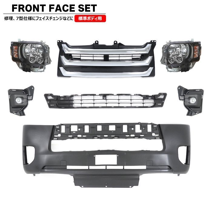 - 200系 ハイエース 標準 7型 8型 フロント 7点 フェイス チェンジ セット Ver.8 LED ヘッドライト グリル バンパー LED フォグ トヨタ