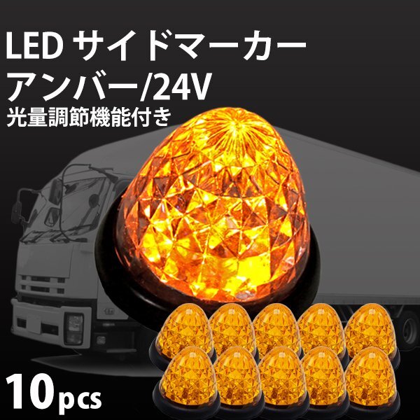 - 24V マーカーランプ 高輝度 16LED サイドマーカー アンバー 10個 高機能防水 強弱発光 インナーメッキリフレクター 明るい 省エネ カスタム
