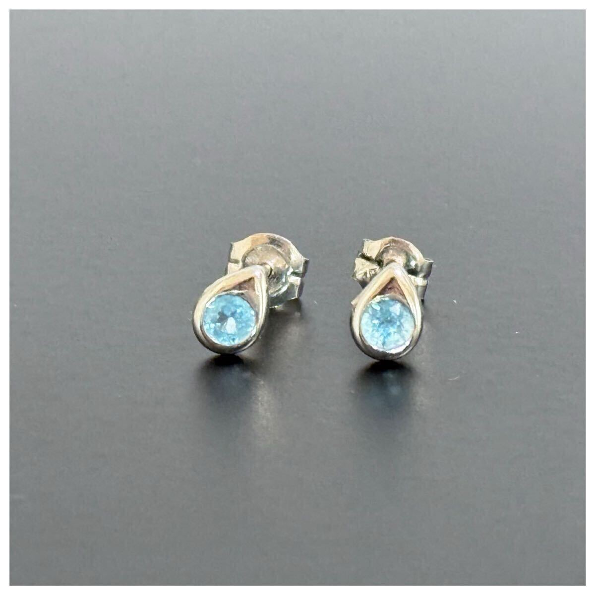 - K14 14K ホワイトゴールド WG 水色 石入り しずく ドロップ ピアス