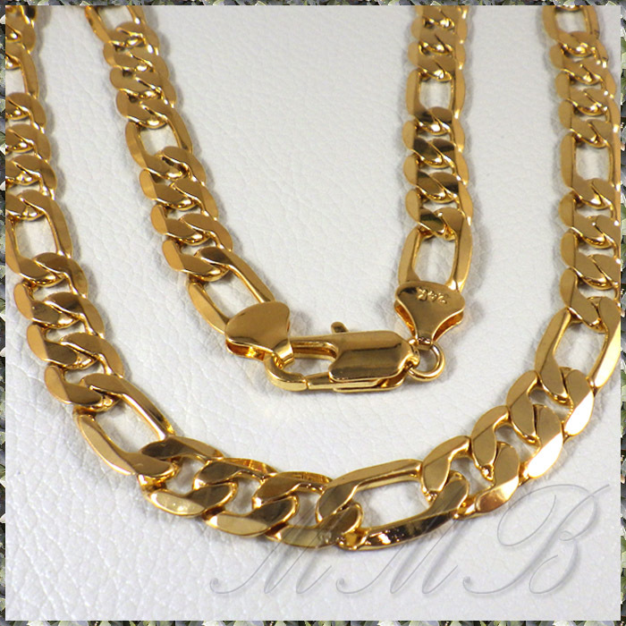 > [NECKLACE] 24K GOLD PLATED FIGARO CHAIN 6面カット フィガロチェーン ゴールド ネックレス 8x700mm (43g)