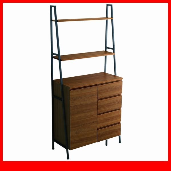 > チェスト ラック★新品/ヴィンテージ風チェストラック 扉&チェスト/充実の収納 扉 引出し ディスプレイ/ウォールナット/a3