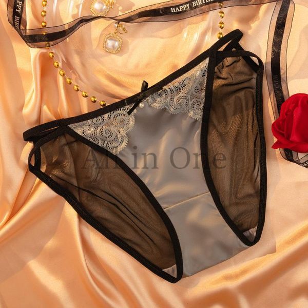 - 116-277-4 レディース 光沢 トライアングル ブリーフ パンティー【グレー,XLサイズ】女性 下着 サテン セクシー ショーツ 透け パンツ .1