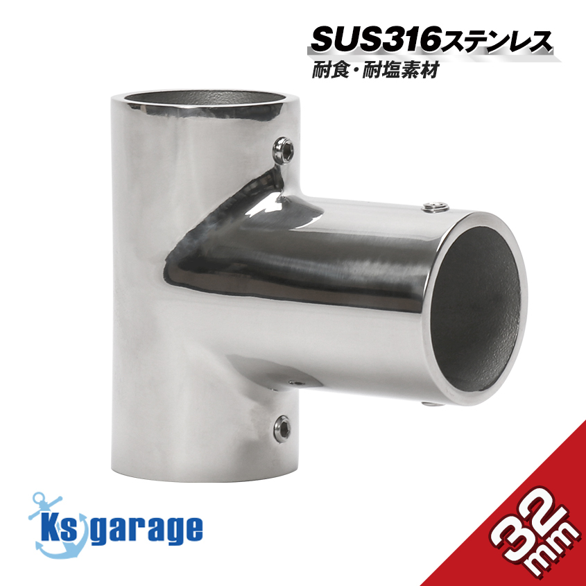 - SUS316 ステンレス パイプジョイント 金具 32mm T字 三方ジョイント 継手チーズ 90度 船 オーニング ボート テント 手すり 自作 DIY用