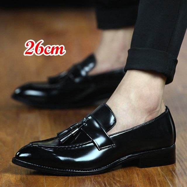- ローファー メンズ スリッポン ビジネスシューズ ドライビング 革靴 紳士靴 タッセルローカット ビンテージ ブラック26cm
