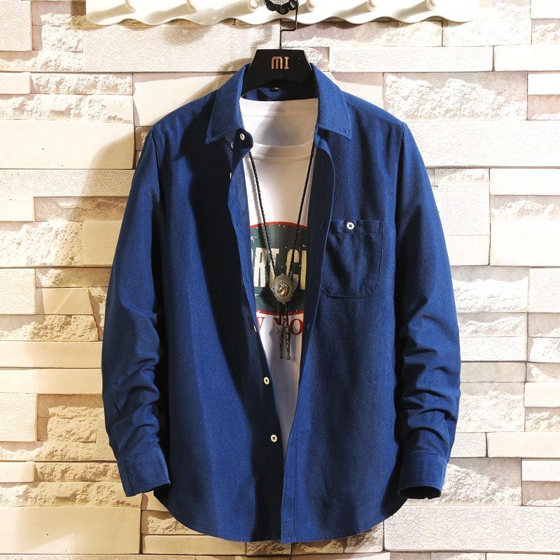 > メンズ長袖シャツ カジュアルシャツ ノーカラーシャツ カジュアルシャツ メンズ 長袖 シャツ メンズトップス 無地 ダークブルー L