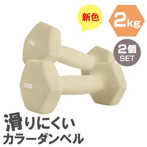 > 【2個セット/ハニー】滑りにくい カラー ダンベル 2kg 筋トレ エクササイズ 宅トレ シンプル ウエイトトレーニング ダイエット 新品 即決