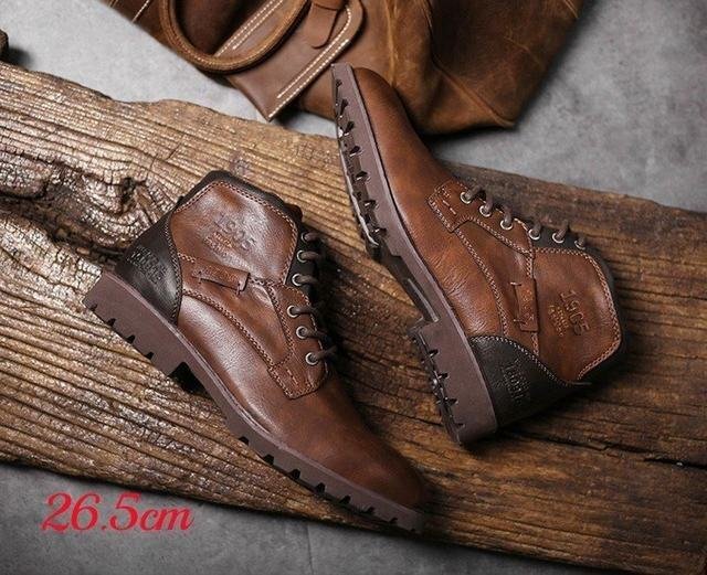 > ブーツ メンズブーツ シューズ ワークブーツ バイクブーツ 靴 レザー靴 ライダース 米風 ミリタリー カジュアル ブラウン 26.5cm