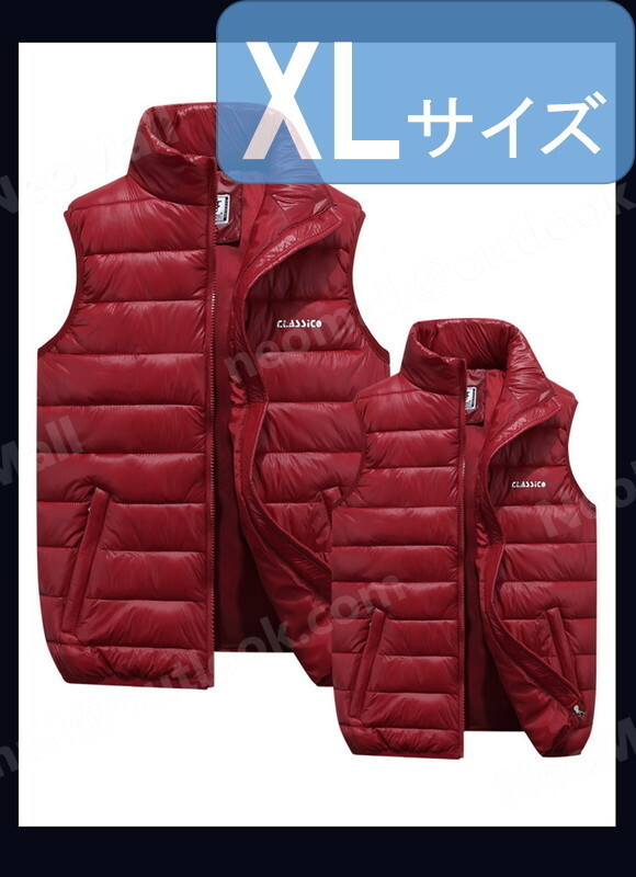 > シンプルな メンズ ダウンベスト 995 レッド XLサイズ 中綿ダウン 中綿ベスト キルティング アウター 防寒 秋冬 暖かい