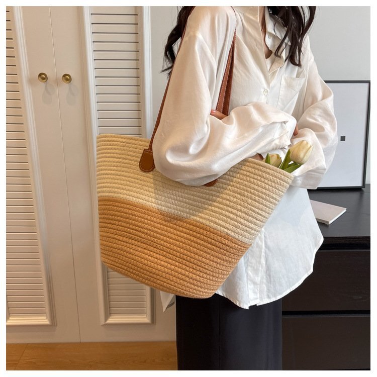 - 新品 トートバッグ 大容量 通勤通学 ハンドバッグ コットンロープ 編み 手持ち pp584