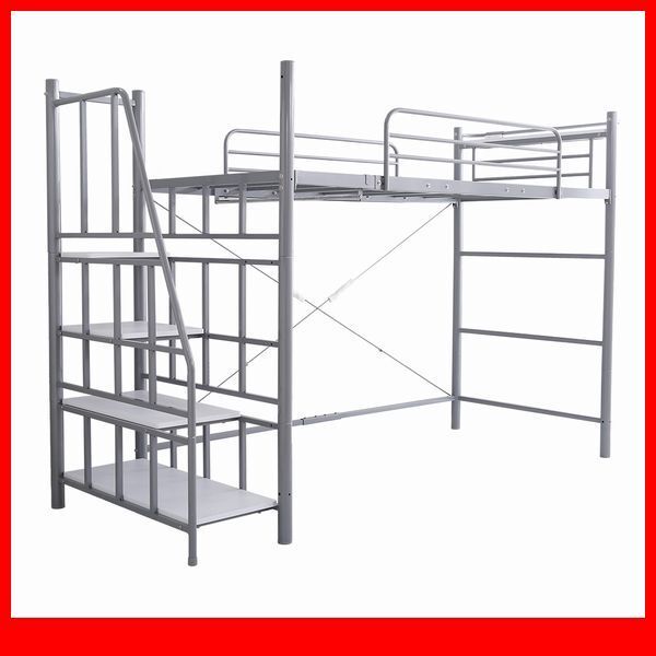 > ベッド★階段付き ロフトベット シングル/宮棚 コンセント付き/ハイタイプミ ドルタイプ 高さ調整/極太パイプベッド/シルバー/最安値/a4