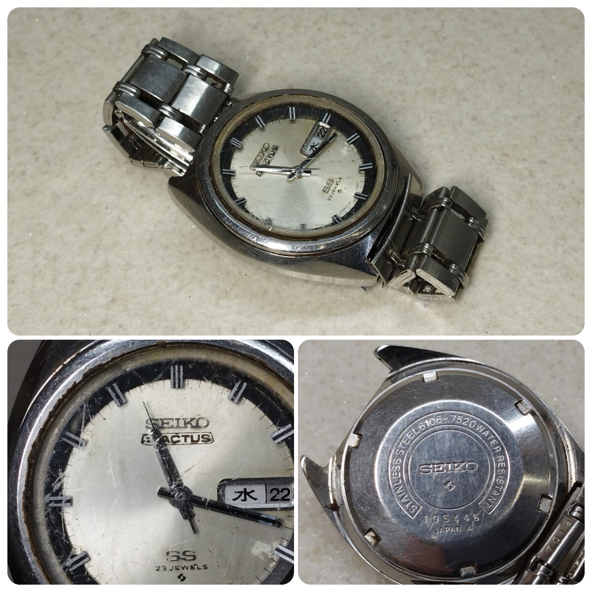 - SEIKO 20 セイコー ファイブアクタス デイデイト アナログ レトロ 腕時計 23石 自動巻 稼働品 6106-7520-SS 古民家整理品b