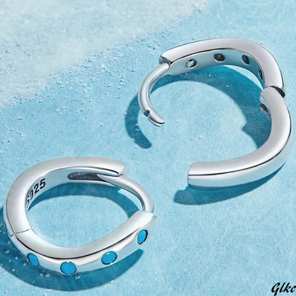- 【シルバー925×ターコイズを組み合わせた小さめフープピアス】 ターコイズ フープピアス シンプル ツイストデザイン 金属アレルギー対応