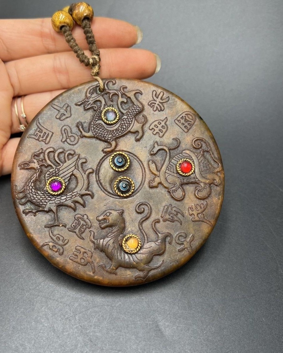 - 御守り 法器 玉器 玉製品 岫玉 ストラップ 飾り 装飾 仏具 仏教 置物収蔵 仏教工芸品 美術品 zh1902