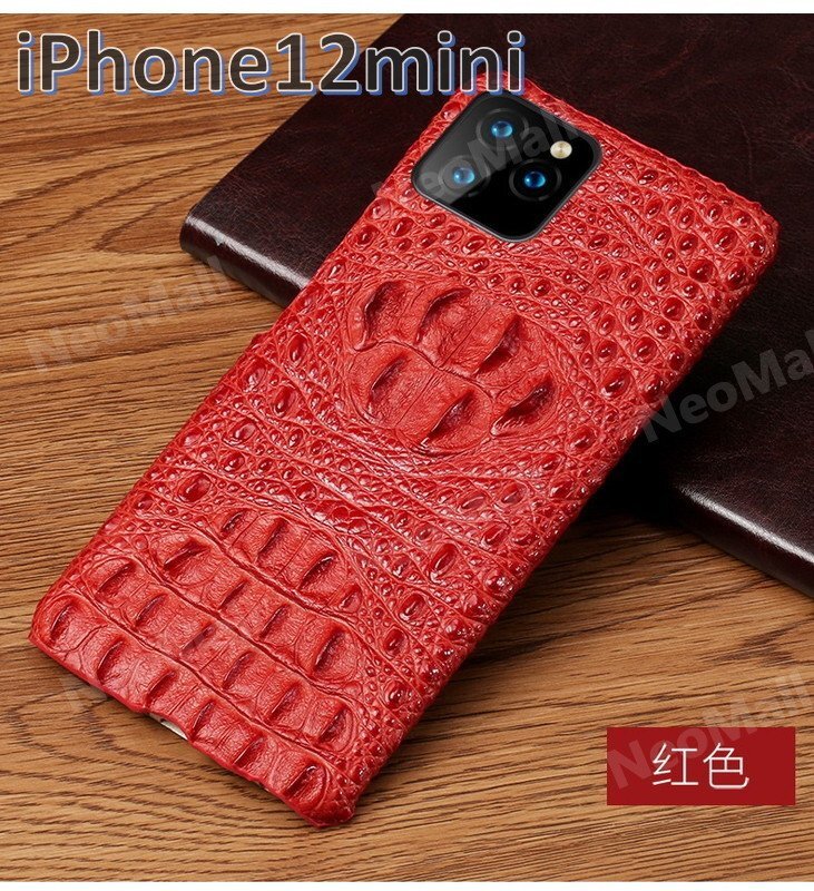 - 人気商品 ☆ アイホン クロコダイル 型押し レザー スマホケース レッド アイホンケース 携帯ケース カバー iPhone12mini 【414】