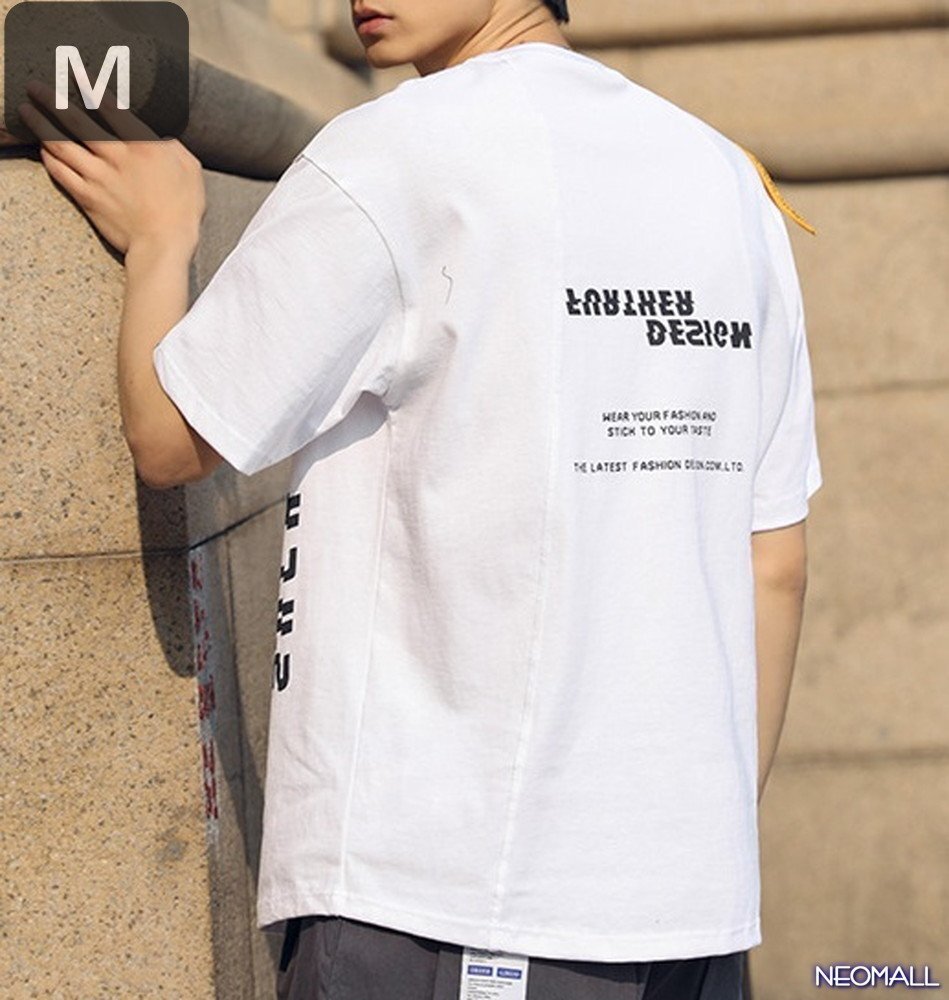 - 人気商品 ☆ 丸首 半袖 Tシャツ【472】 ホワイト Mサイズ トップス シャツ シンプル イラスト デザイン 春夏