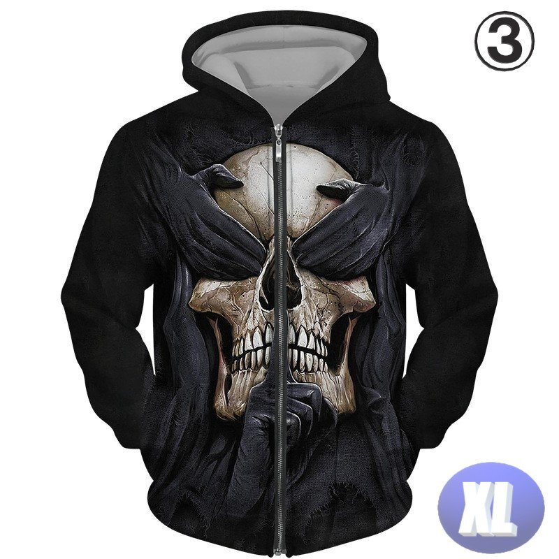 - フード付き ドクロパーカー ジップアップ カラー3 XL トレーナー アウター 防寒 n717