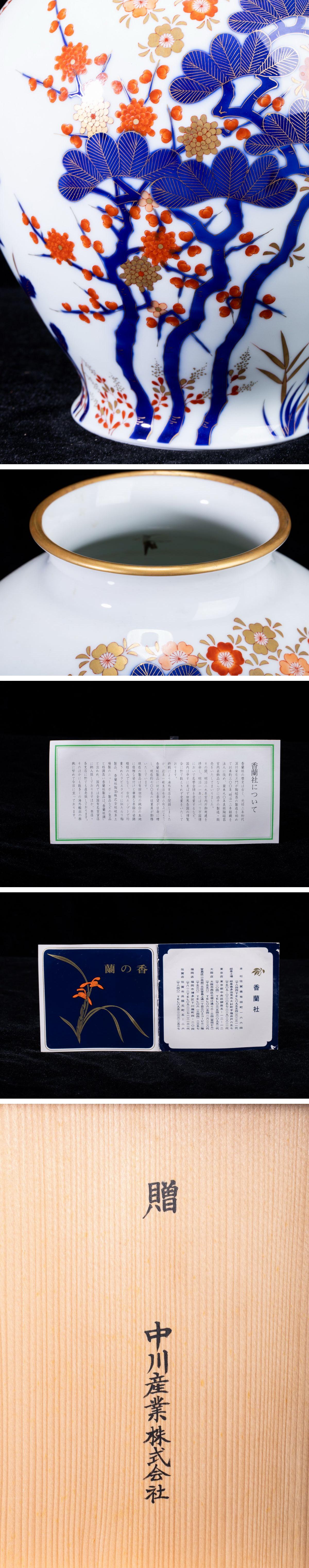 > 【珍品堂】1円から N3-V2 有田焼 香蘭社謹製 金彩 梅桜花図 細密絵付 染錦 花瓶 高31㎝ 共箱 木箱 飾壺 時代物 鑑賞品 骨董品 古美術 希少