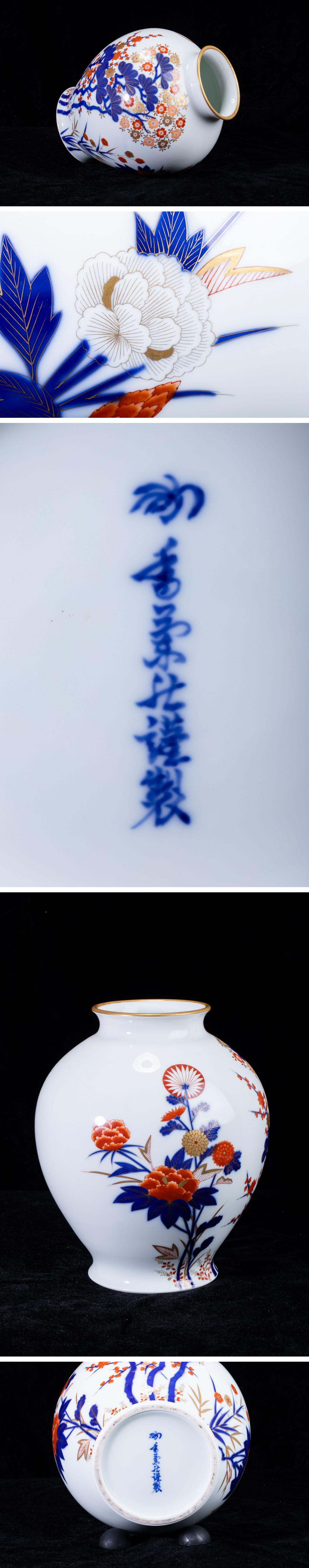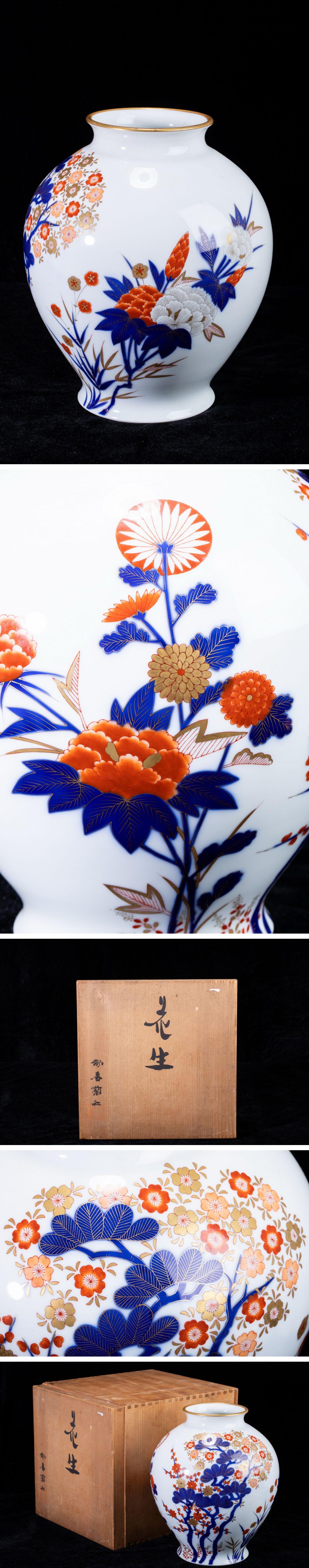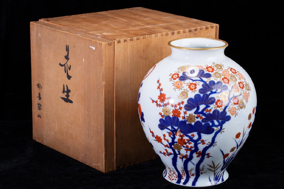 - 【珍品堂】1円から N3-V2 有田焼 香蘭社謹製 金彩 梅桜花図 細密絵付 染錦 花瓶 高31㎝ 共箱 木箱 飾壺 時代物 鑑賞品 骨董品 古美術 希少