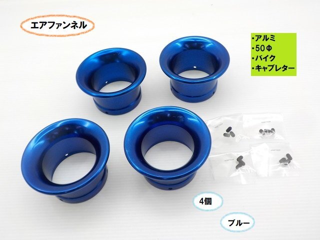 - TH60★☆アルミエアファンネル(50Φ)(バイク キャブレター)4個セット ブルー(CB400SF CB250T Ninja ハーレー DAX モトラ)