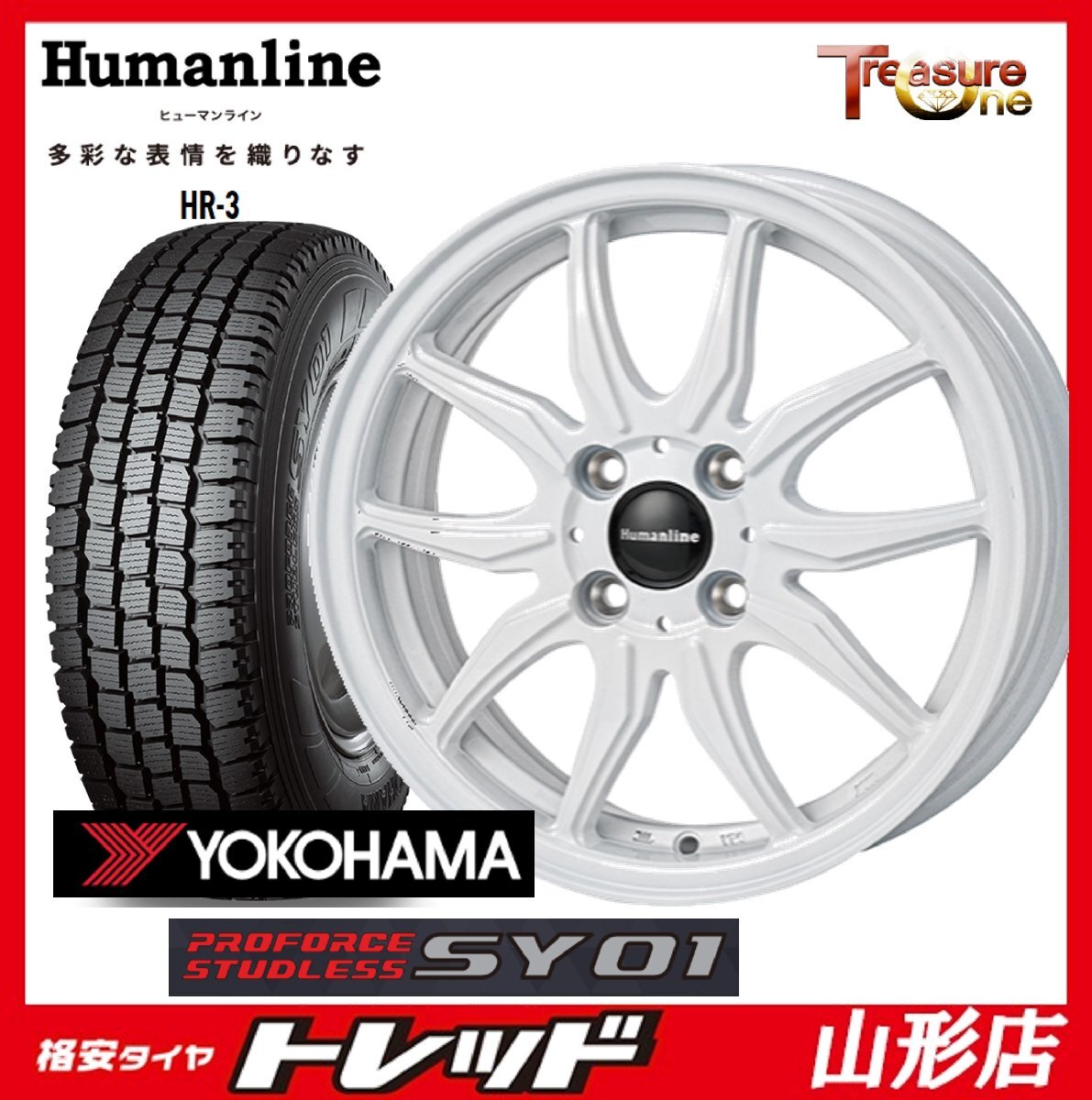 > 山形店 新品 冬タイヤホイールセット ヒューマンライン HR-3 12インチ 3.5j 4H100 +42 ホワイト ヨコハマ SY01 145/80R12 2024年製 軽トラ