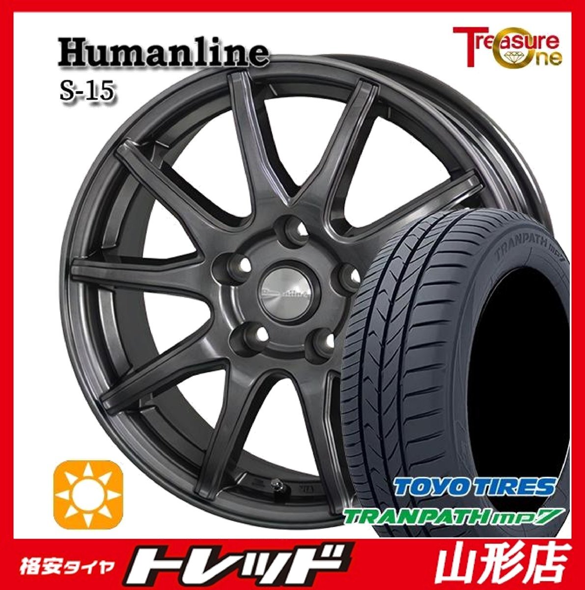 > 山形店 新品 夏タイヤホイール4本セット Humanline S-15 16インチ 6.5J 5H114.3 +53 GMBK トーヨー トランパスmp7 205/60R16 2025年製 ノア