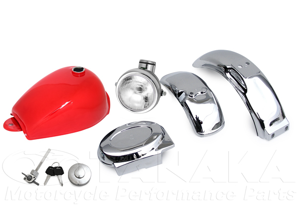 - モンキー5L用燃料タンク(ガソリンタンク)レッド・サイドカバー・前後フェンダーセット[Y241] 田中商会