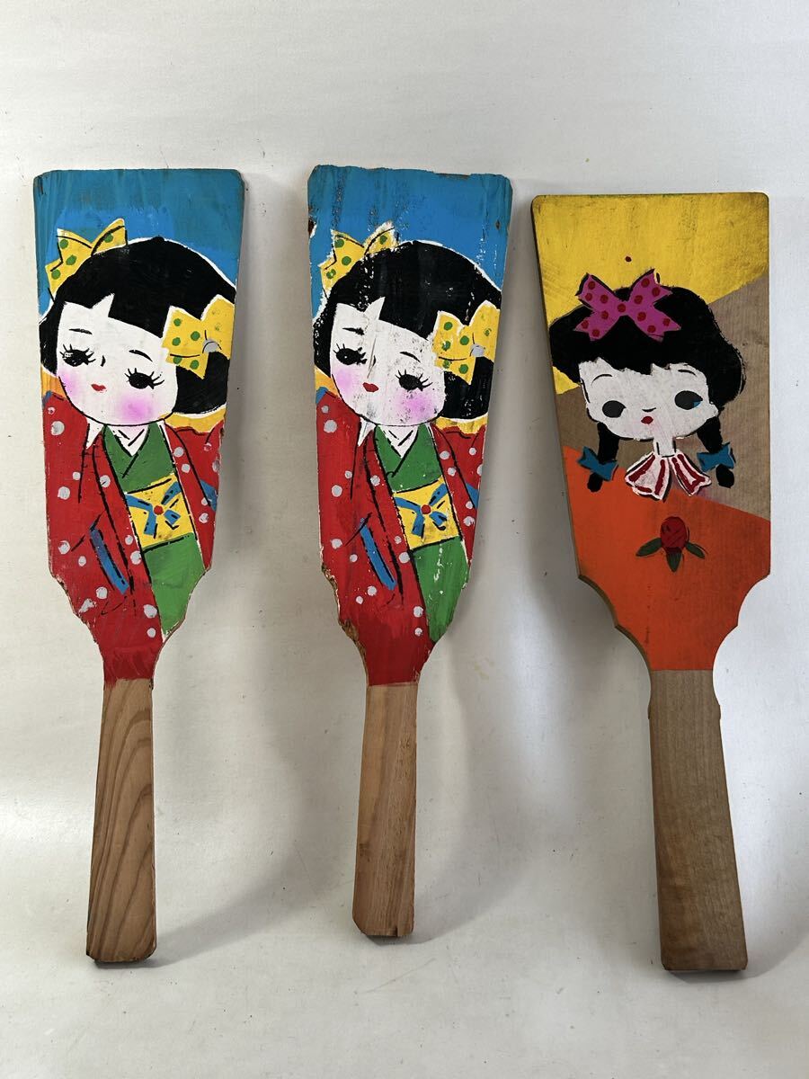 - 木製 子供用 羽子板 当時物 昭和レトロ