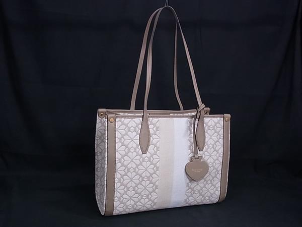 - 1円 ■極美品■ kate spade ケイトスペード キャンバス×レザー トートバッグ ショルダー 肩掛け レディース ベージュ系 FR4767