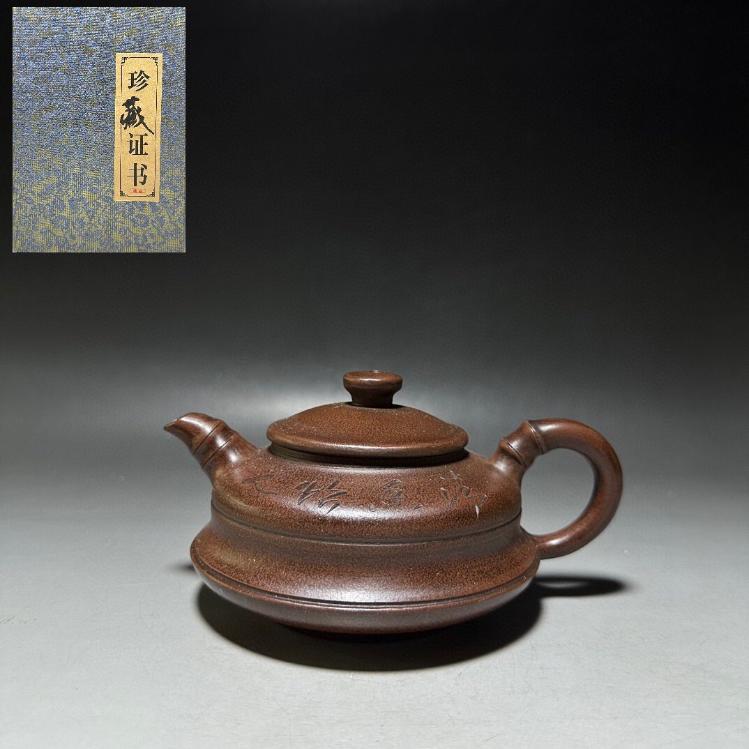 - 永し 旧家蔵出 汪寅仙款 品名【雅韻】朱泥 段泥 煎茶道具 急須 単孔口 唐物 紫砂壺 紫砂壷 茶壷 茶壷 極細工 古美術品 中国唐物 A15