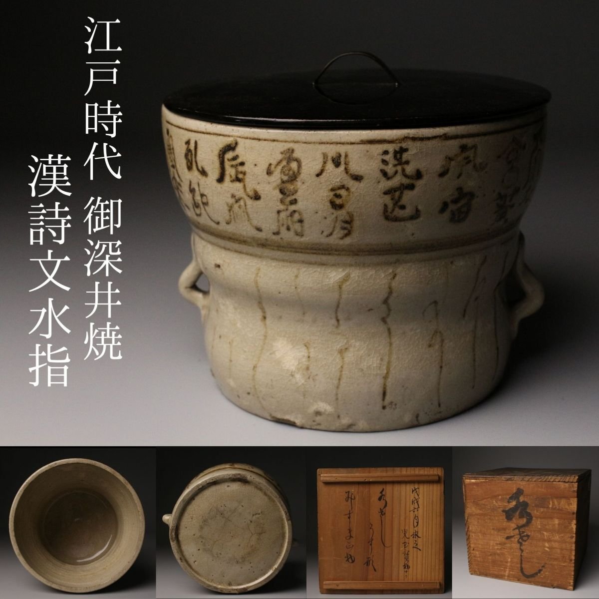 > 【LIG】江戸時代 御深井焼 漢詩文水指 墨書箱 京焼 清水焼 古美術品 御庭焼 コレクター収蔵品⑤[-P]25.09