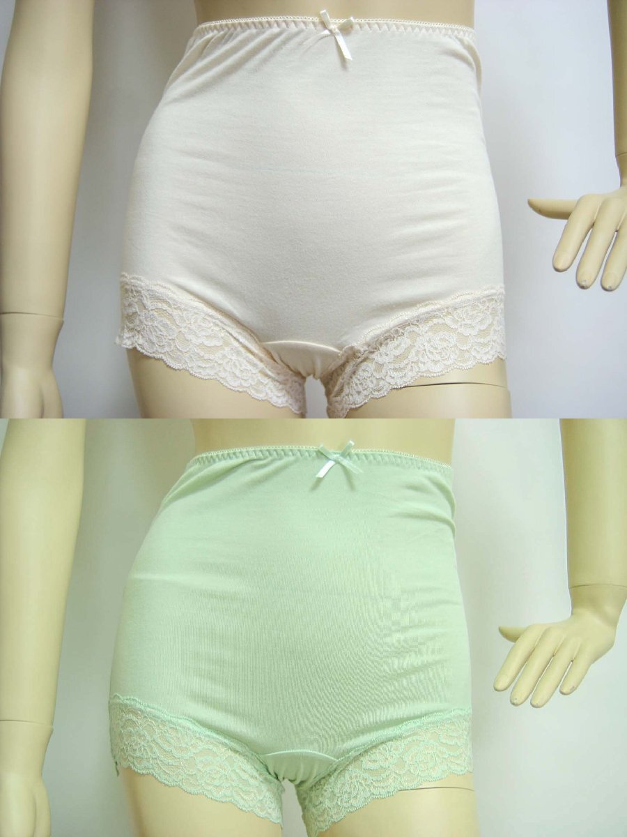 - 送料無料◆2色×2組◆綿95%◆お腹すっぽり◆深履きタイプ◆幅広レース◆1分丈ショーツ(3L/クリームベージュ&ライムグリーン)78950