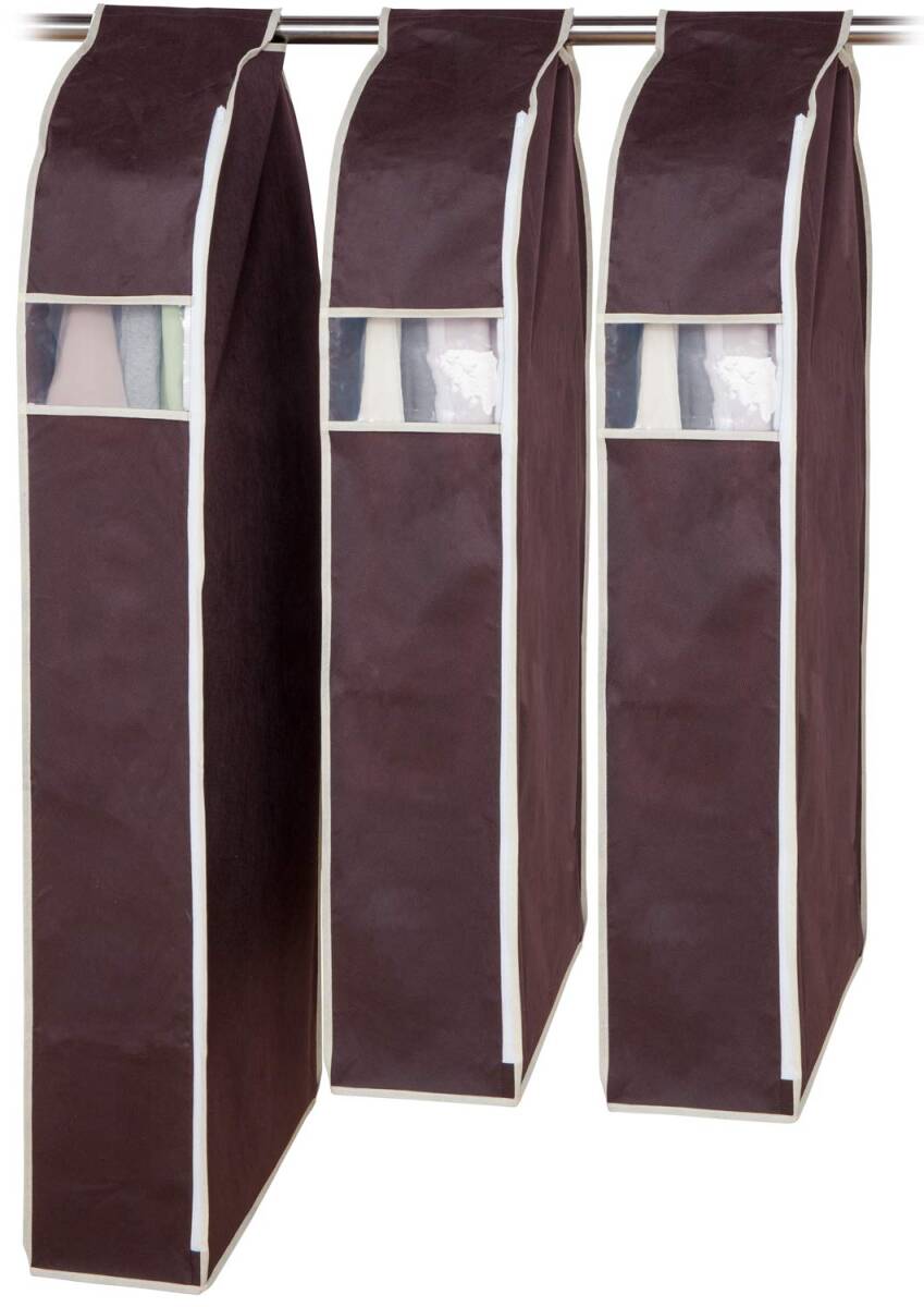 - アストロ 衣類カバー ブラウン マチ付き スリム 3枚組 (ショートサイズ2枚+ロングサイズ1枚) 不織布 洋服カバー 衣装カバー 透明窓 防虫