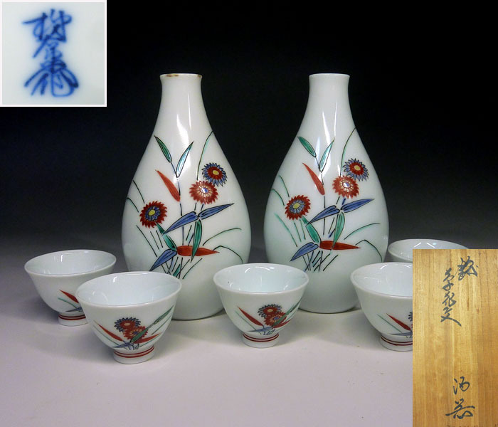 - 【陶酔】 十三代・酒井田柿右衛門 錦草花文酒器
