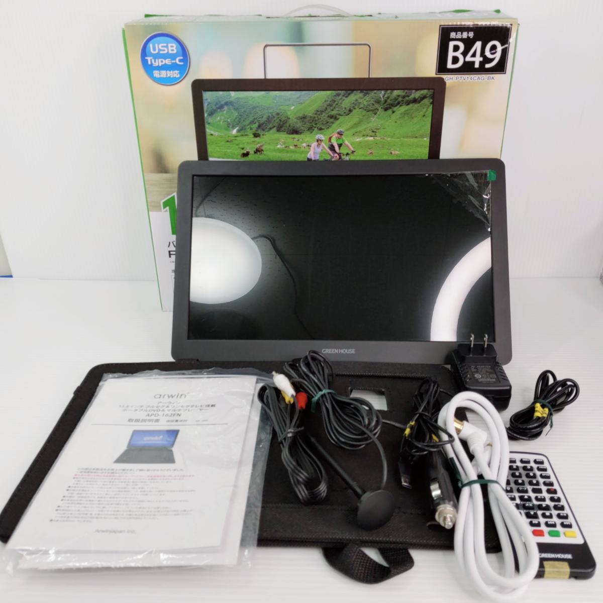 - 【中古品】グリーンハウス 14インチ GH-PTV14CAG-BK B49 バッテリー内蔵ポータブルテレビ 〇YR-54270〇