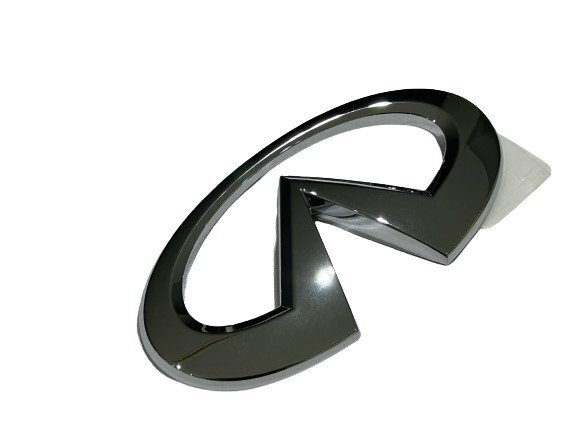 - 日産純正 ニッサン V37 スカイライン INFINITY リアエンブレム 他車流用可能 65mm×125mm メッキ インフィニティ マーク 送料無料!
