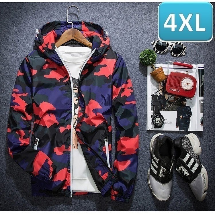 - ☆ 【175】 迷彩 ウィンドブレーカー フード付き レッド 4XL メンズ ナイロン カモフラ 柄 アウトドア 防風 軽量 ジャケット
